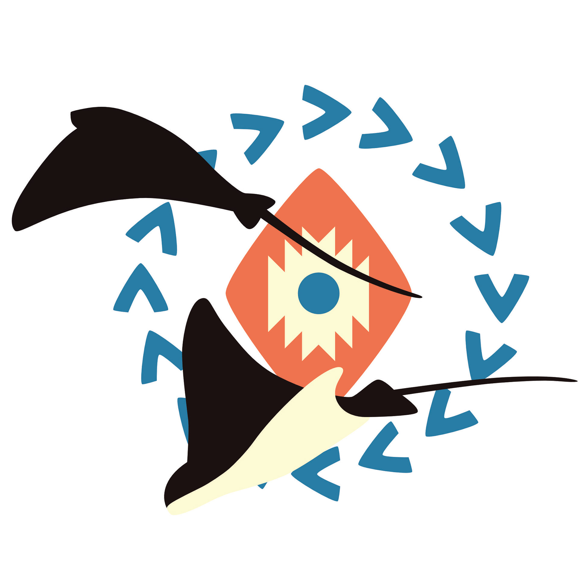 Deze print is geïnspireerd op deze sierlijke, slimme roggen en hoe ze door de oceaan zweven.